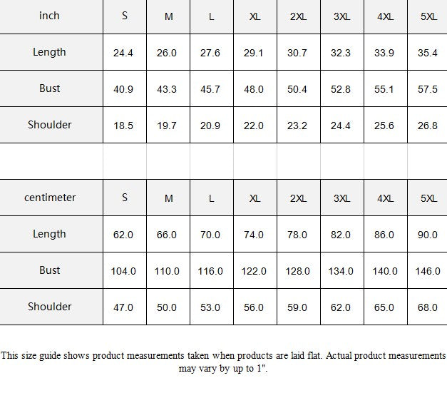 | centimeter | S | M | L | XL | 2XL | 3XL | 4XL | 5XL |